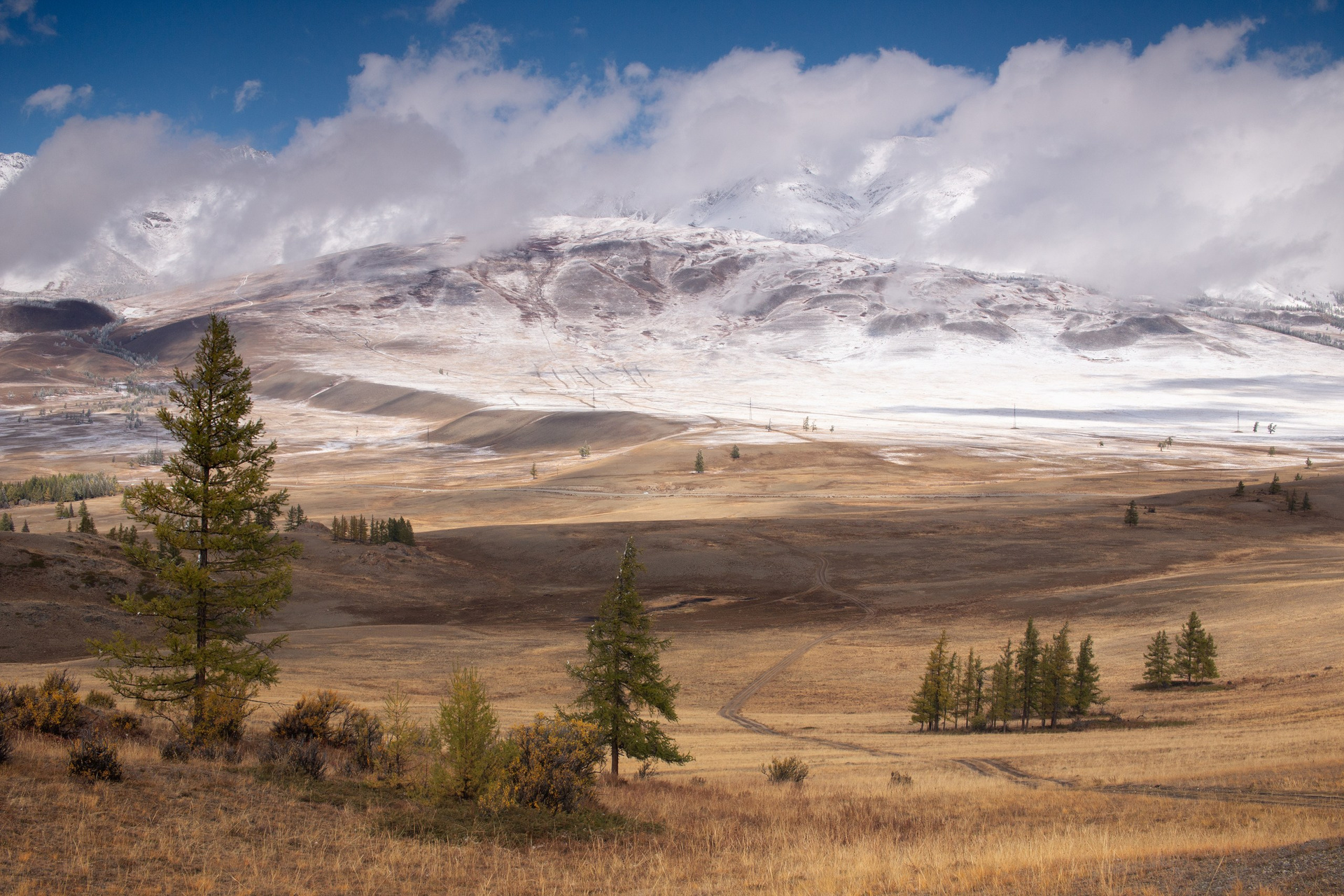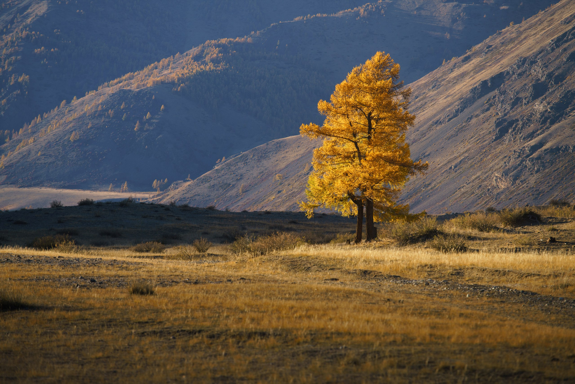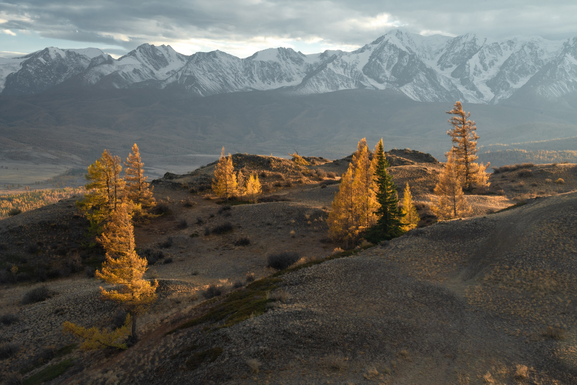 Алтай — это бесконечное разнообразие жанров и настроений. Конечно классика — рассвет на Аккемском озере, когда идеальный штиль превращает воду в зеркало, отражающее великолепную Белуху. Настоящая магия Алтая раскрывается в деталях. Я как и все обожаю золотую осень в Курайской степи, где желтые лиственницы горят на фоне снежных пиков Северо-Чуйского хребта. А высоко в горах на пути к Актру утренние туманы и переменчивый свет делают эти пейзажи по-настоящему мистическими.