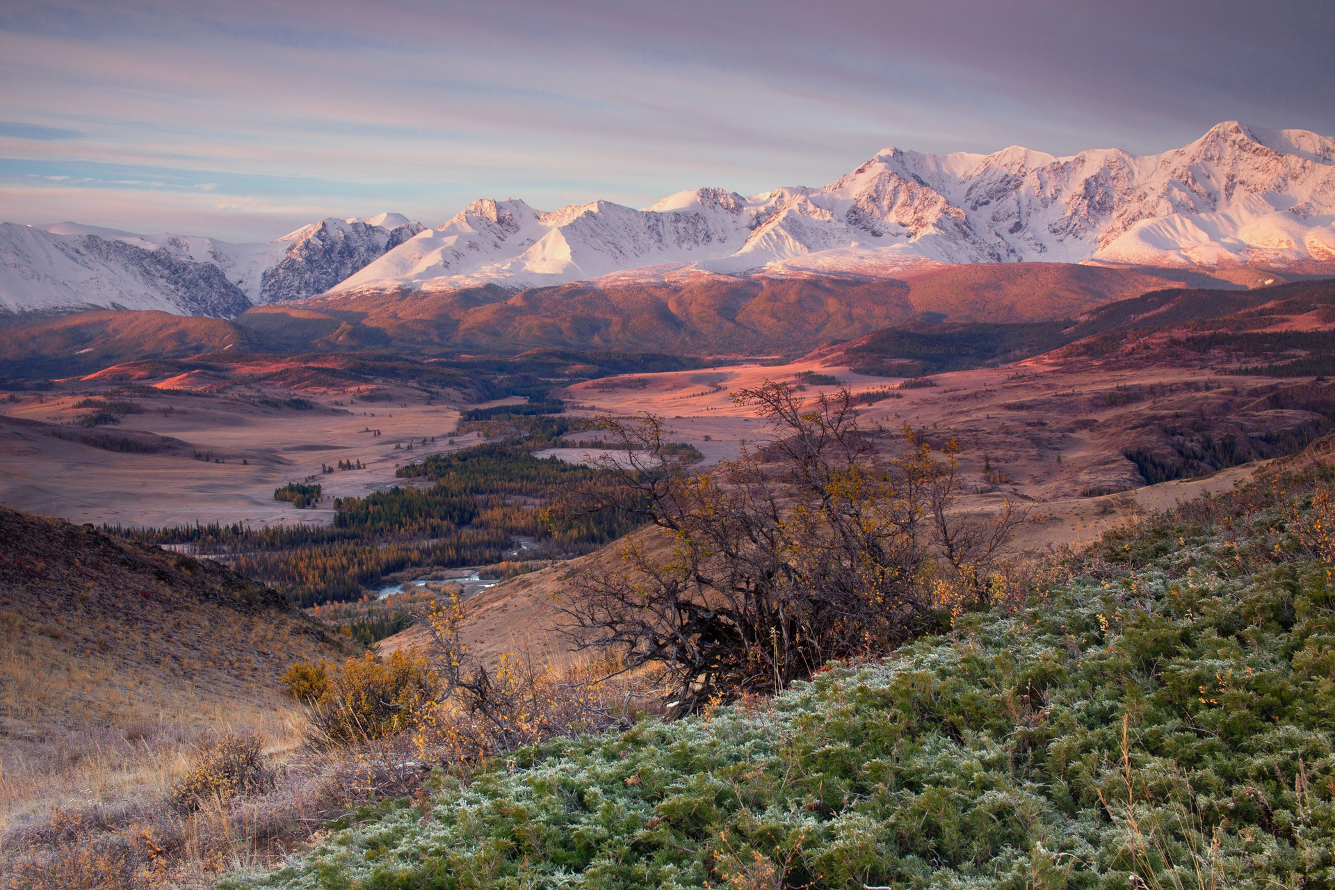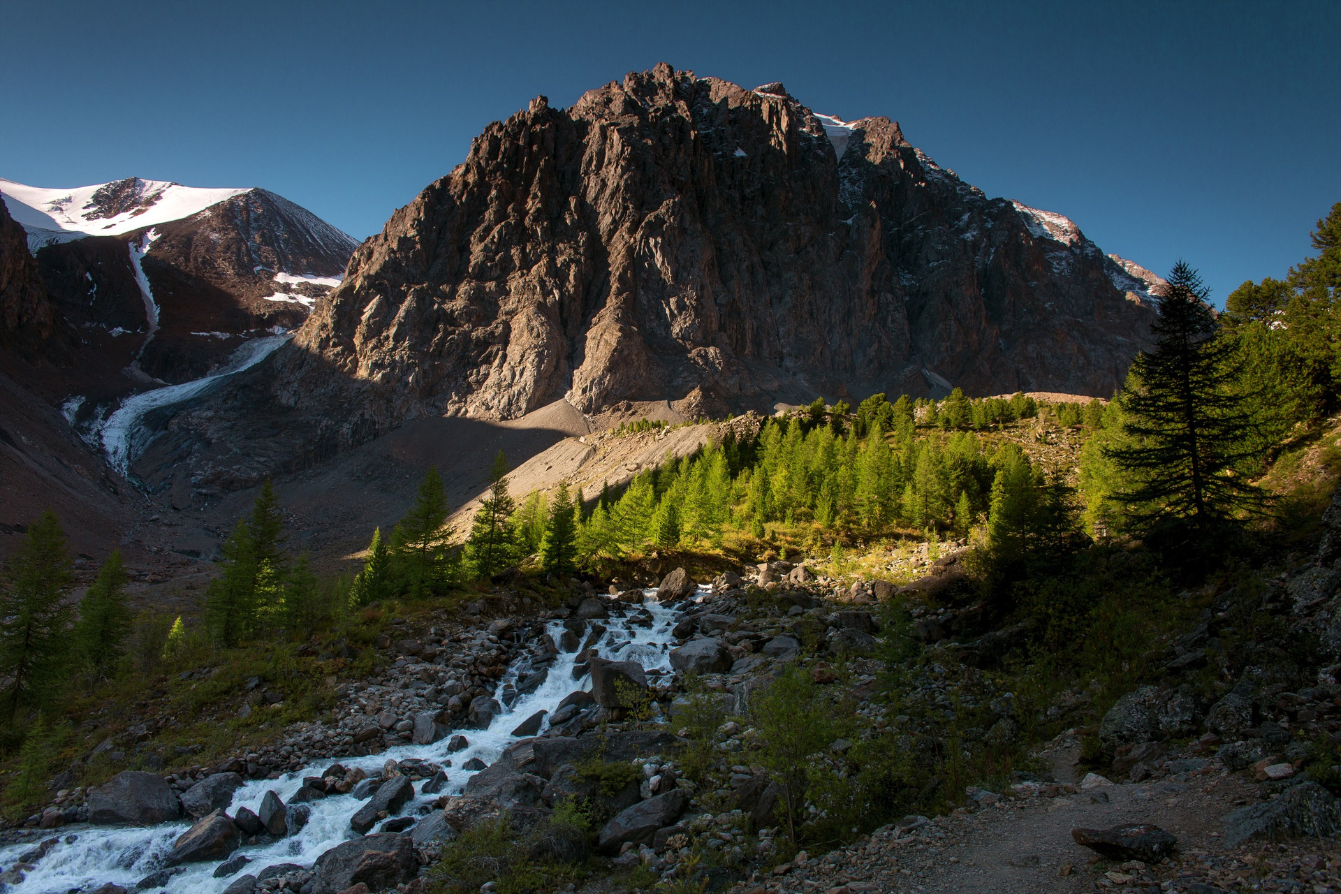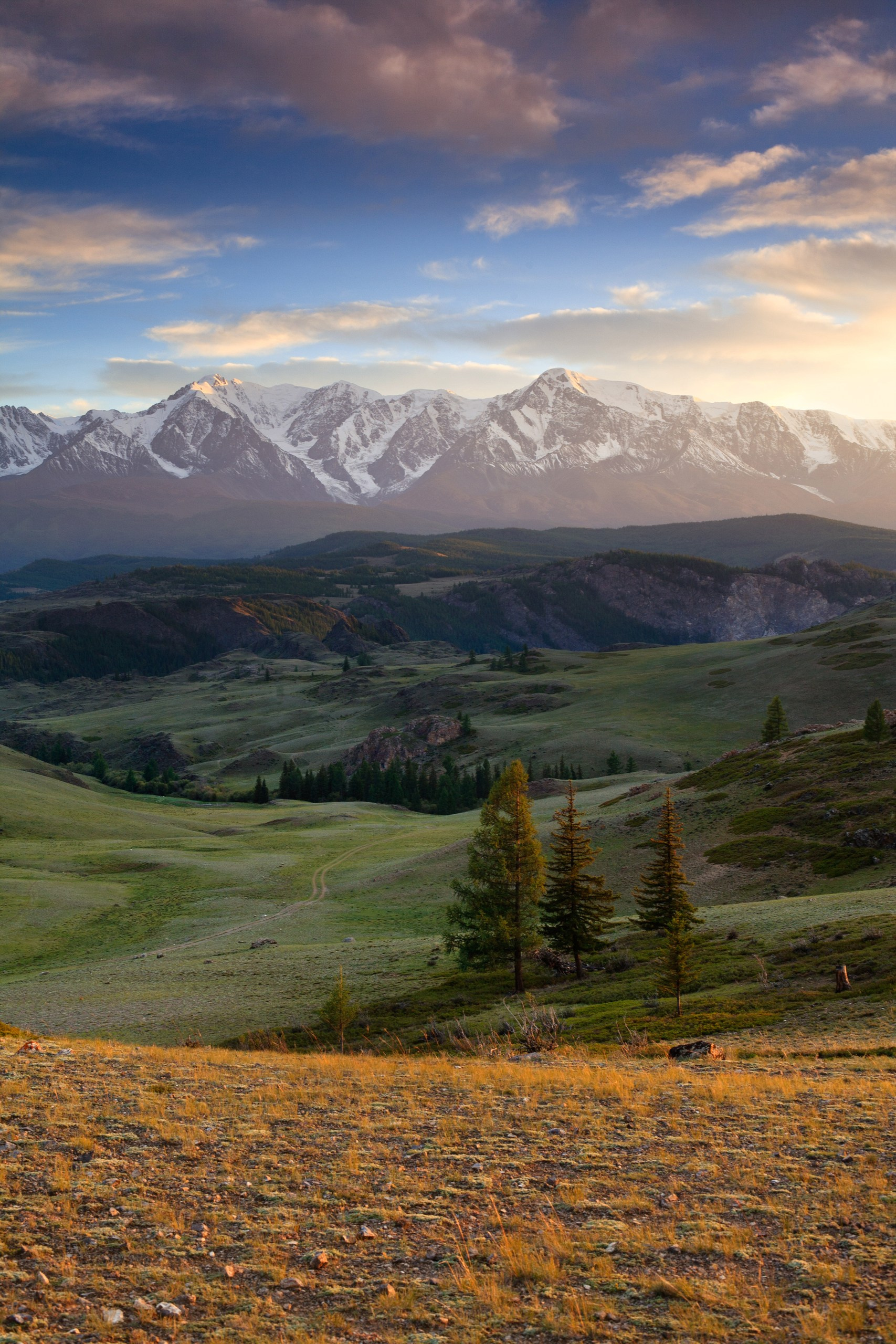 Алтай — это бесконечное разнообразие жанров и настроений. Конечно классика — рассвет на Аккемском озере, когда идеальный штиль превращает воду в зеркало, отражающее великолепную Белуху. Настоящая магия Алтая раскрывается в деталях. Я как и все обожаю золотую осень в Курайской степи, где желтые лиственницы горят на фоне снежных пиков Северо-Чуйского хребта. А высоко в горах на пути к Актру утренние туманы и переменчивый свет делают эти пейзажи по-настоящему мистическими.