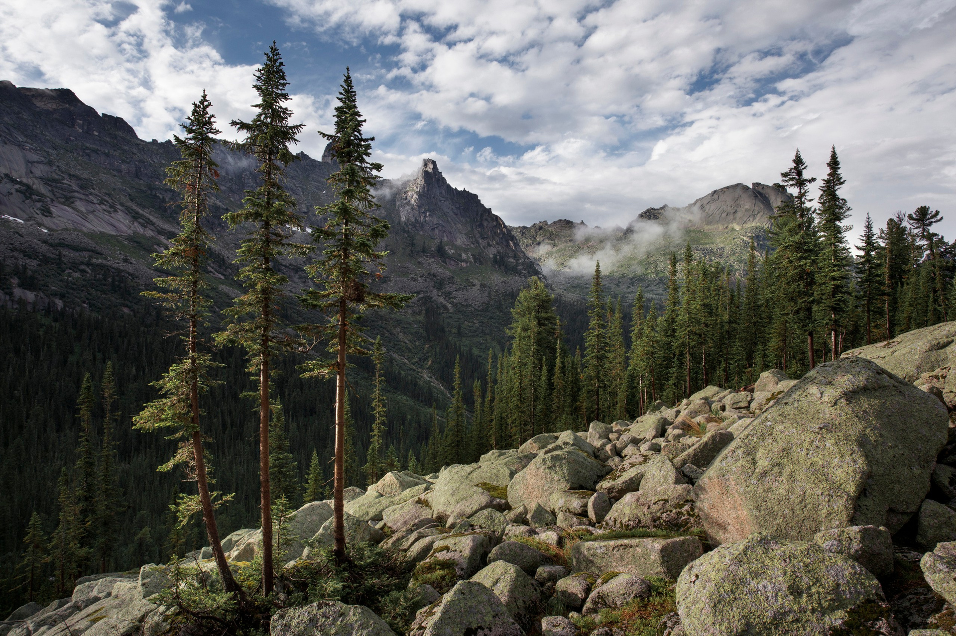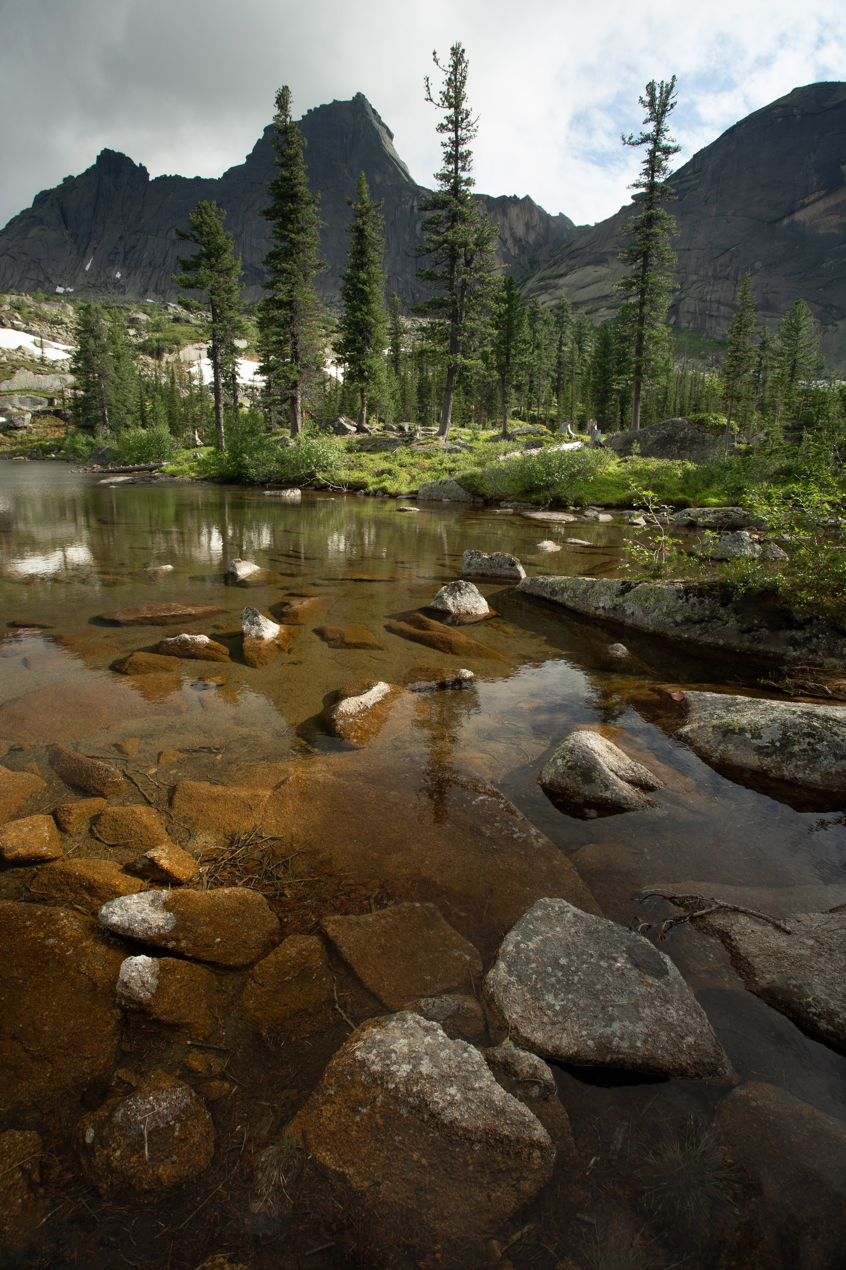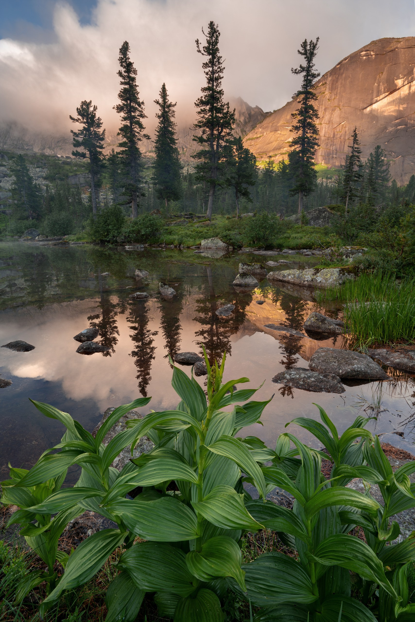 Ергаки — это идеальный баланс между доступностью и величием. Визитная карточка здесь — озеро Художников с каменным островком и кедром, ради которого сюда стремятся пейзажисты со всей страны. Я много раз был здесь и ловил момент, когда первые лучи солнца касаются пики гор на рассвете, пока туман еще стелется по низинам. В пасмурную погоду туманы здесь творят магию, превращая знакомые виды в мистические полотна.