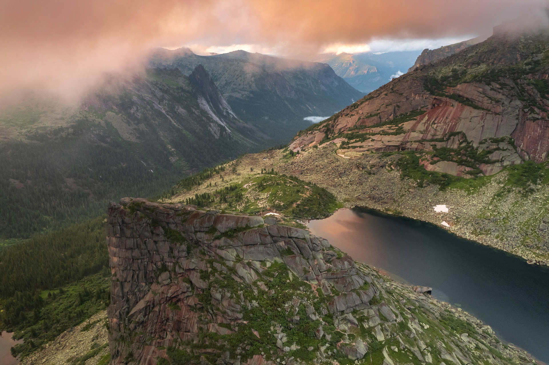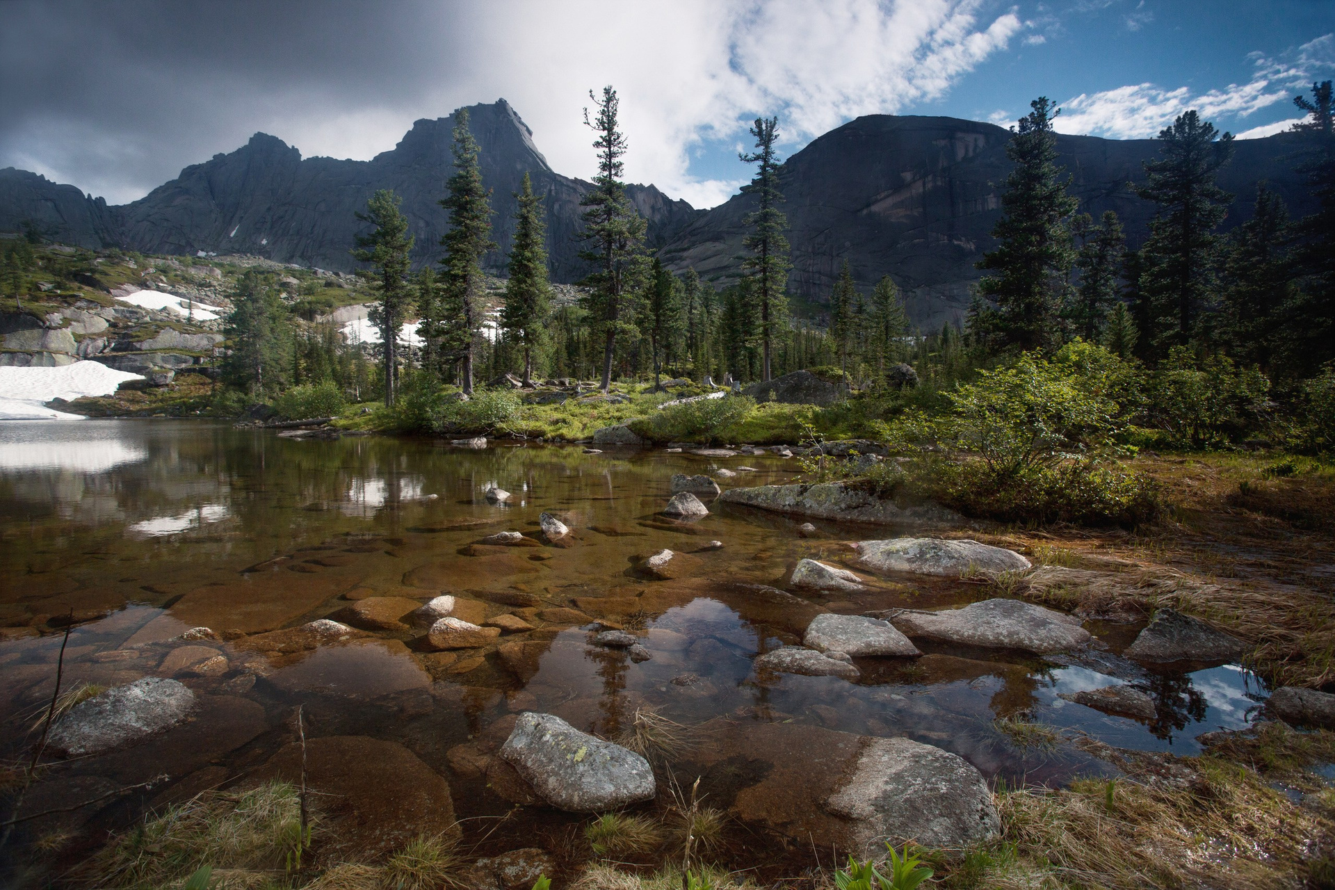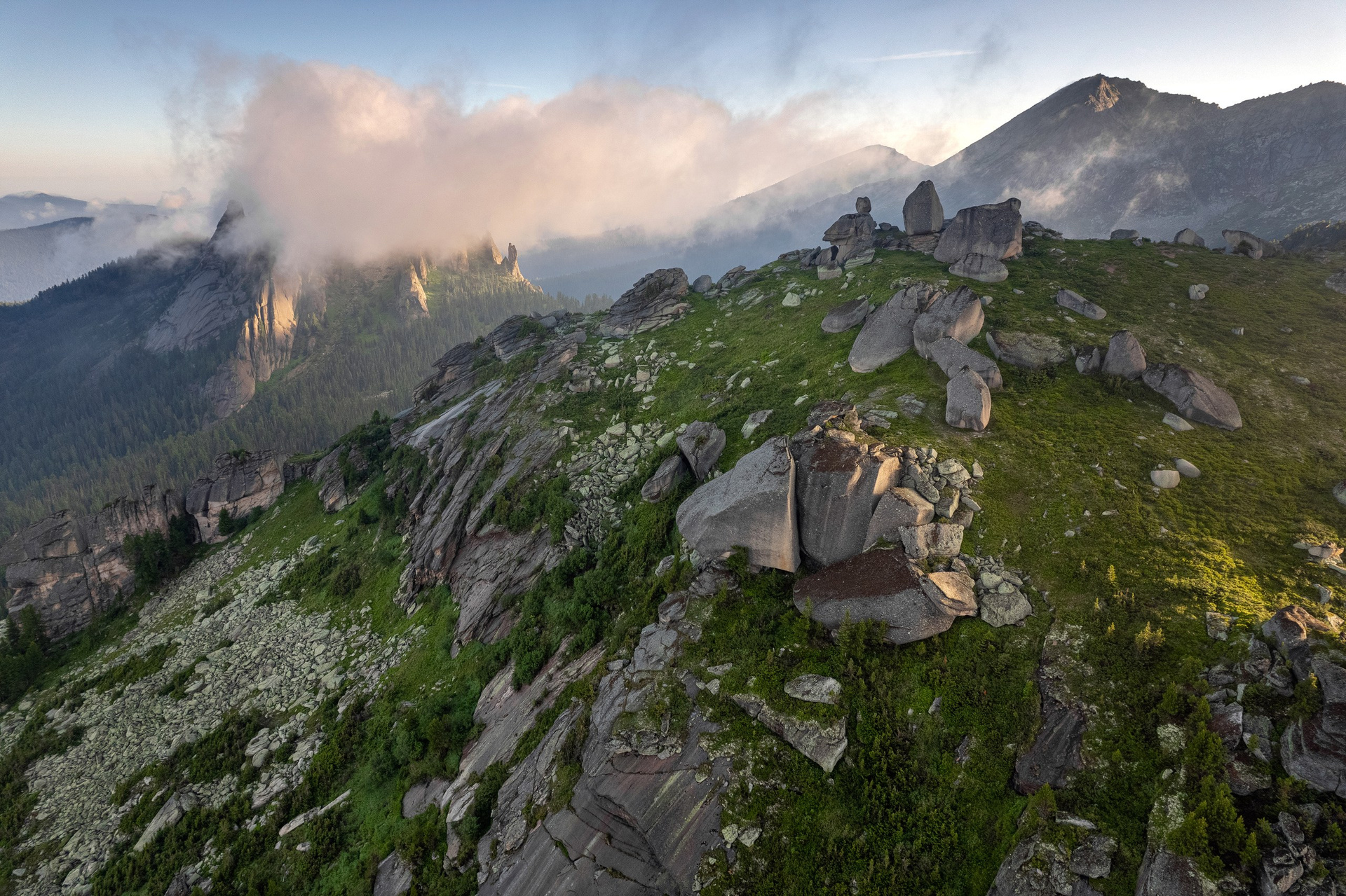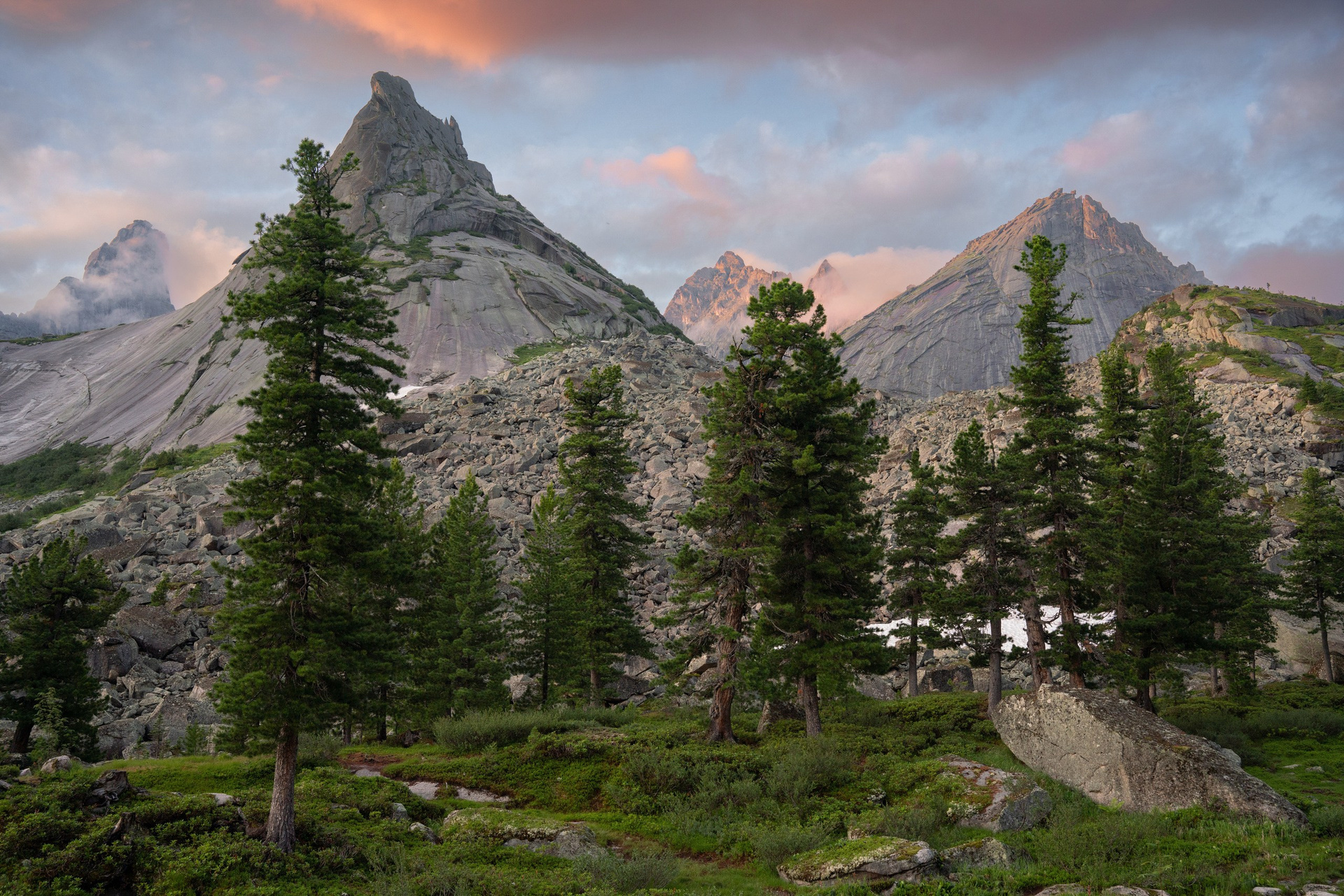 Ергаки — это идеальный баланс между доступностью и величием. Визитная карточка здесь — озеро Художников с каменным островком и кедром, ради которого сюда стремятся пейзажисты со всей страны. Я много раз был здесь и ловил момент, когда первые лучи солнца касаются пики гор на рассвете, пока туман еще стелется по низинам. В пасмурную погоду туманы здесь творят магию, превращая знакомые виды в мистические полотна.