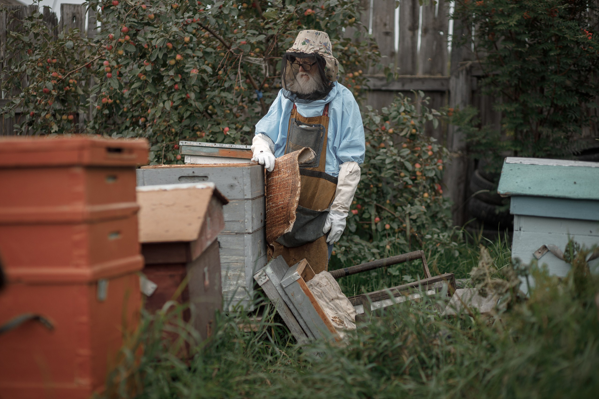 Деревня Кубеково встретила нас тишиной, пахнущей дымком, полынью и, едва уловимо, мёдом. Дом, постройки конца позапрошлого века, больше походил на крепость — добротную, основательную, приросшую к земле. А в огороде, стояли ряды цветных ульев, похожих на сказочные терема. И среди них, неспешный и величавый, как патриарх, двигался сам хозяин. Алексей Григорьевич. Высокий, сухопарый, с лицом, изрезанным морщинами не старости, но сосредоточенного внимания. Руки — крупные, узловатые, с вечными следами прополиса — больше говорили о его жизни, чем любые слова.