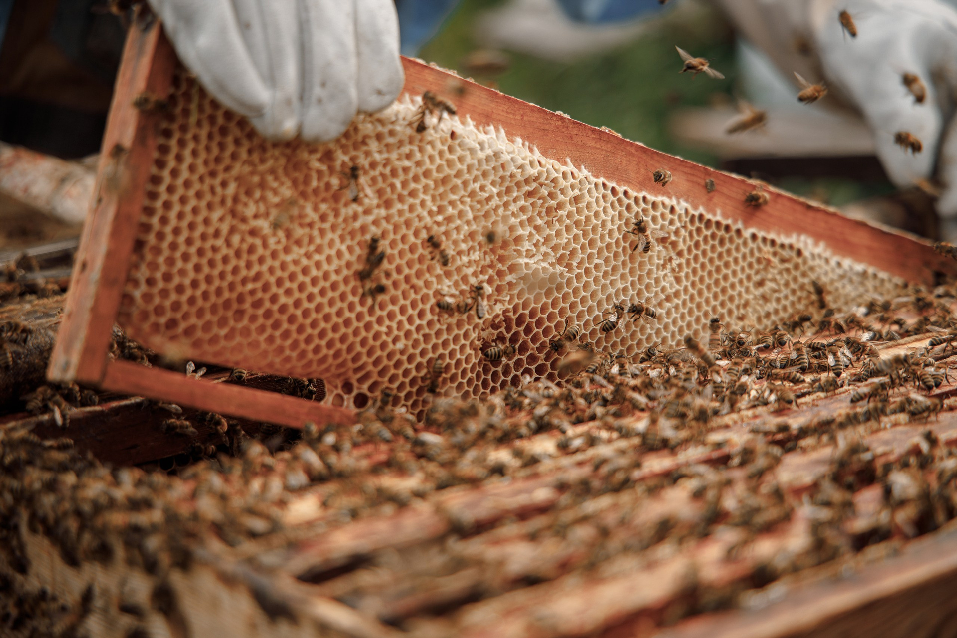 Каждое его утро — ритуал. Ещё затемно он выходит к ульям, садится на скамеечку и наблюдает. «Выхожу, смотрю, какой лёт. Породы разные вылетают в разное время. Погоду по пчёлам чувствуешь лучше, чем по барометру. Леток — вот это важно. Если семья сильная, бурлит — оставляю три-четыре пальца шириной. Средняя — два. На ночь прикрываю — прохладно. Всё как у людей: кому-то нужен простор, а кому-то — уют».