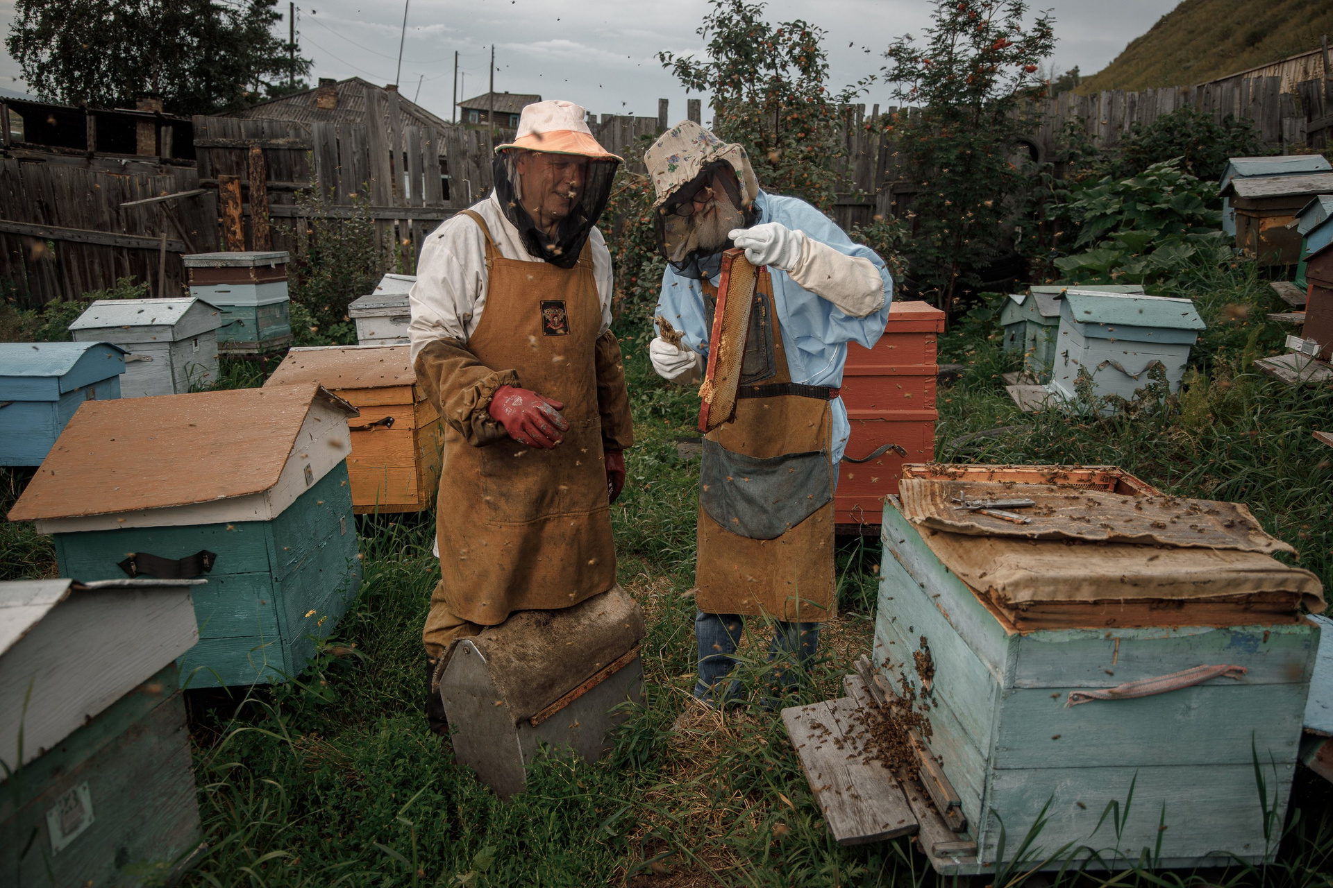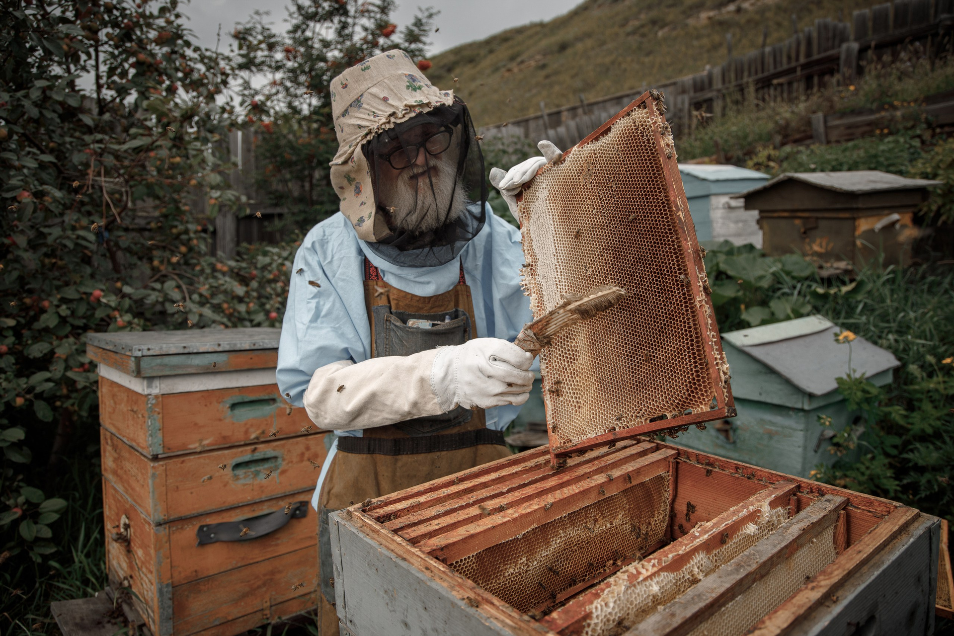 «Я познал пчёл с сорок седьмого года, — рассказывает Алексей Григорьевич, голос у него был низкий, с лёгкой хрипотцой. — Отец с войны вернулся и занялся. А до него — деды, прадеды. Сначала в колодах держали, в долблёнках. Потом перешли на рамочные. Сюда, под Красноярск, семья моя перебралась в пятидесятых. Отец затосковал, захотел поближе к нам. И нашёл это место. Пришёл на рынок, а там кубековские бабы торгуют. И говорят ему: «Здесь пасека скоро открывается, а пчеловода нет. Вот так судьба и распорядилась».